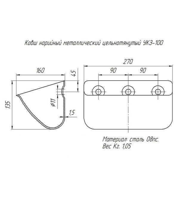 Ковш норийный металлический УКЗ-100 (270х160х135 мм)