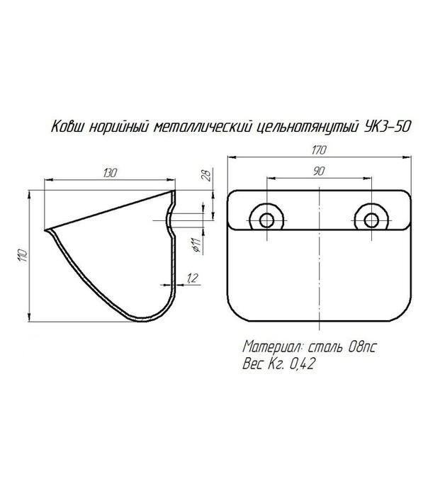 Ковш норийный металлический УКЗ-100У (270х160х135 мм)