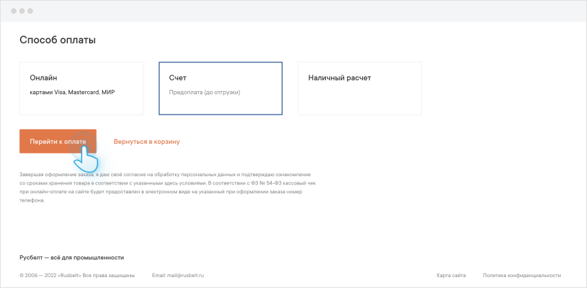 Внимательно проверьте заказ, если все верно – нажмите кнопку «Перейти к оформлению»