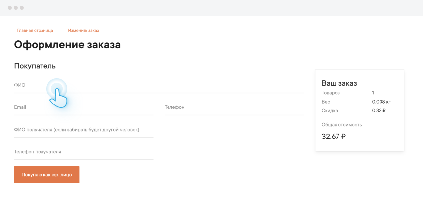 Вы оформляете заказ впервые или выбрали “Продолжить без авторизации” данные о компании