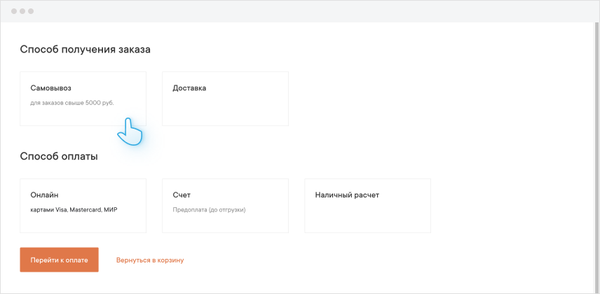 Выберите способ получения заказа